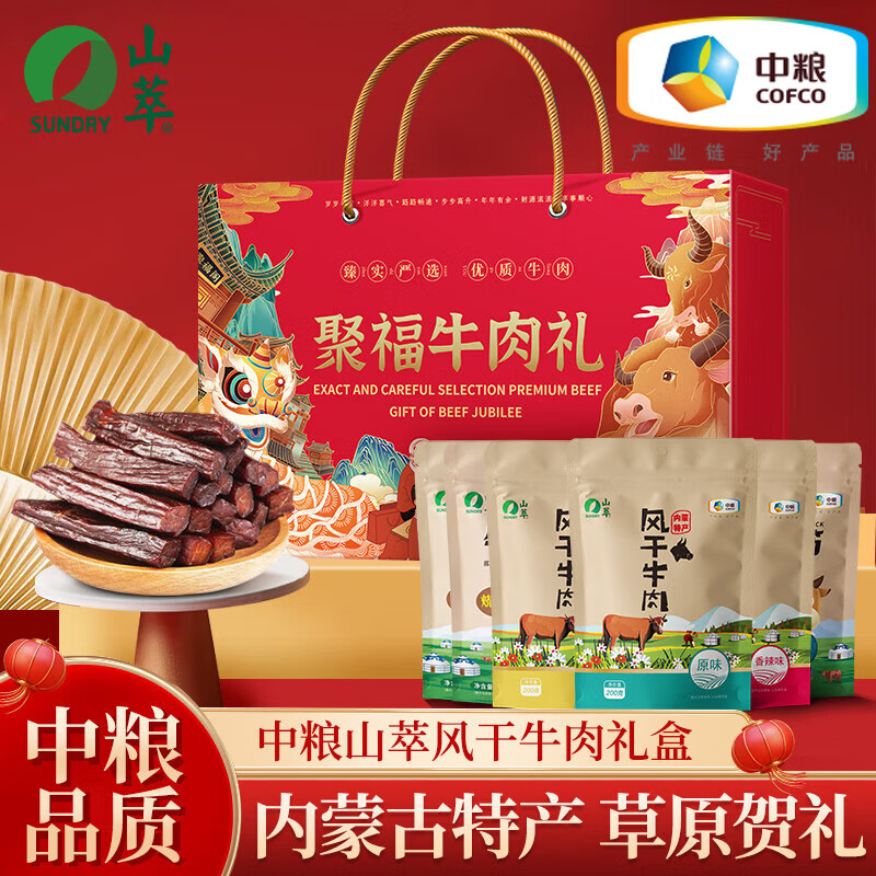 ¥369 山萃(SUNDRY)中粮风干牛肉干内蒙特产肉干肉脯休闲零食团购过年货礼品盒送长辈 399