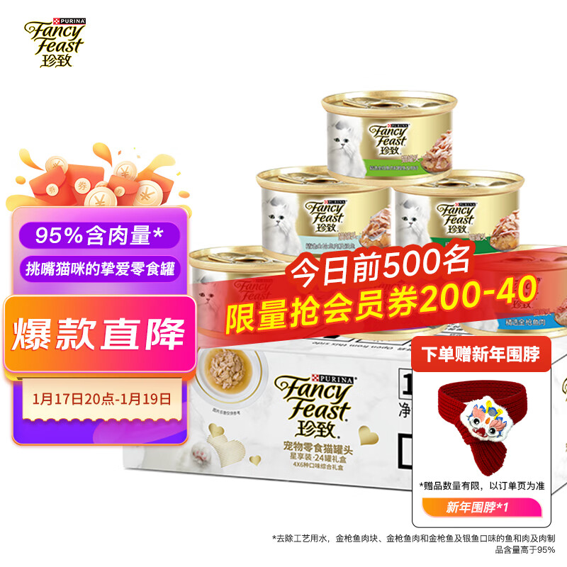 ¥143 珍致猫罐头猫零食成猫幼猫罐头85g*24罐 原装进口金罐混合口味礼盒 203