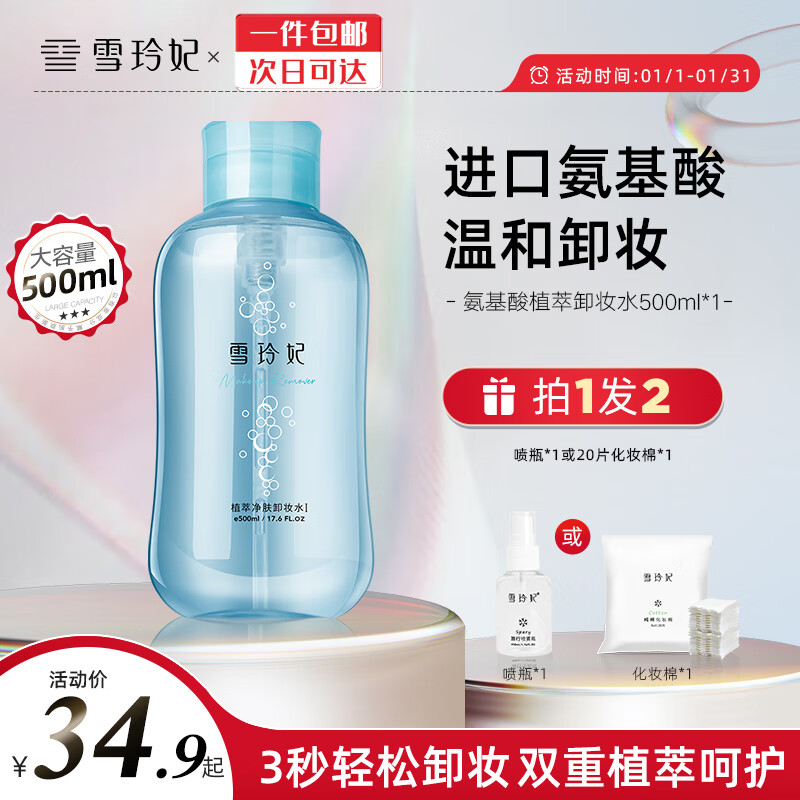 ¥24.9 雪玲妃氨基酸植萃卸妆水500ml 深入清洁 舒缓保湿 按压式眼唇脸三合一 39.9