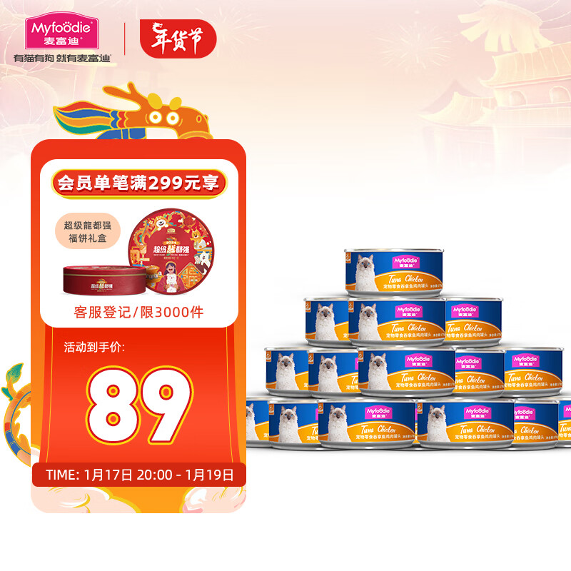 ¥84 麦富迪猫罐头 营养低盐补水冻干猫零食湿粮猫条 吞拿鱼鸡肉味170g*24 89