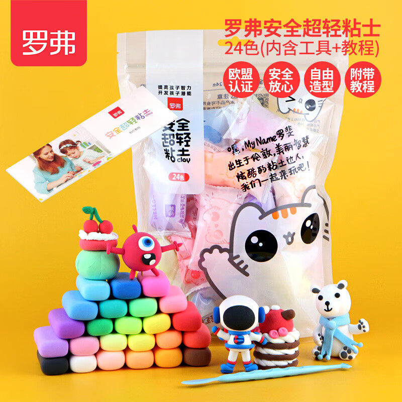 ¥19.8 罗弗 超轻粘土24色彩泥橡皮泥儿童玩具益智3-6岁手工粘土diy黏土袋装 19.8
