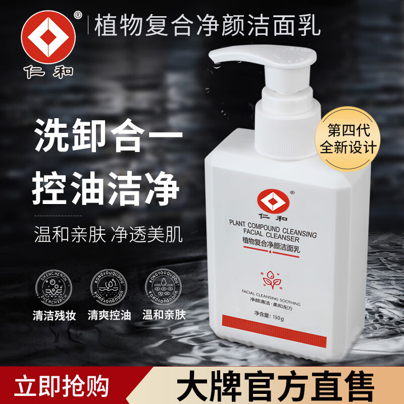 ¥14.9 仁和植物复合净颜洗面奶男女补水洁面乳温和细致毛孔学生青少年 控油净痘洗面奶1瓶装 49.9