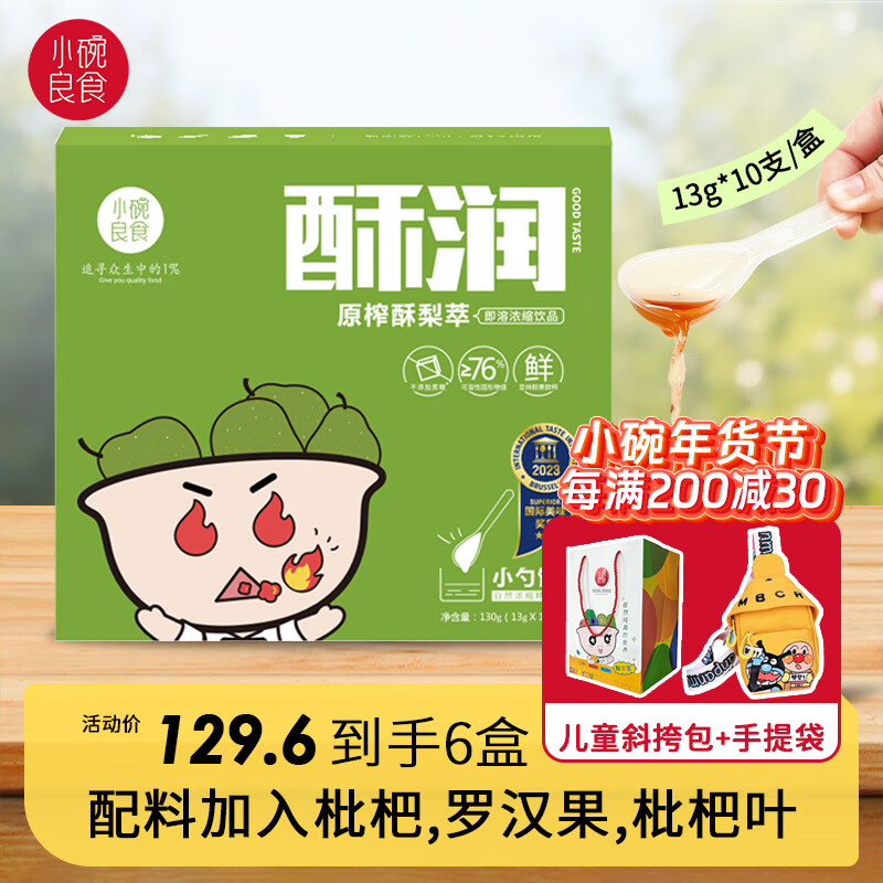 ¥139.6 小碗良食 秋梨膏原榨酥梨萃枇杷梨膏宝宝成人老人勺装礼袋盒年货儿童梨膏 【老客复购】勺装梨膏6盒 159.6