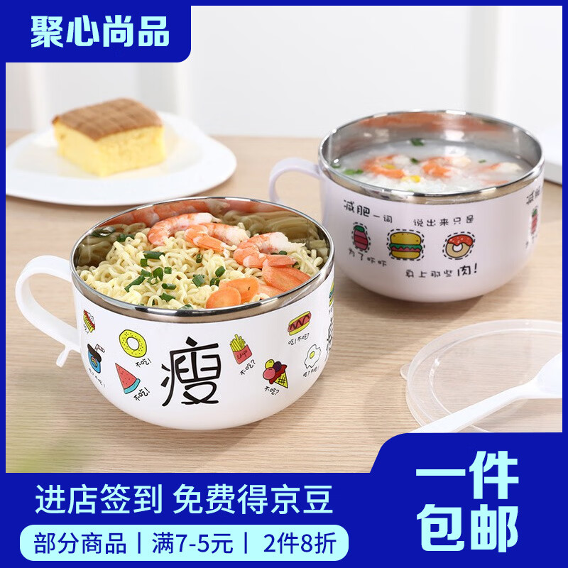 ¥9.9 聚心尚品 不锈钢泡面碗带盖宿舍学生饭盒上班族便携便当盒饭碗大号 款式随机 14.9