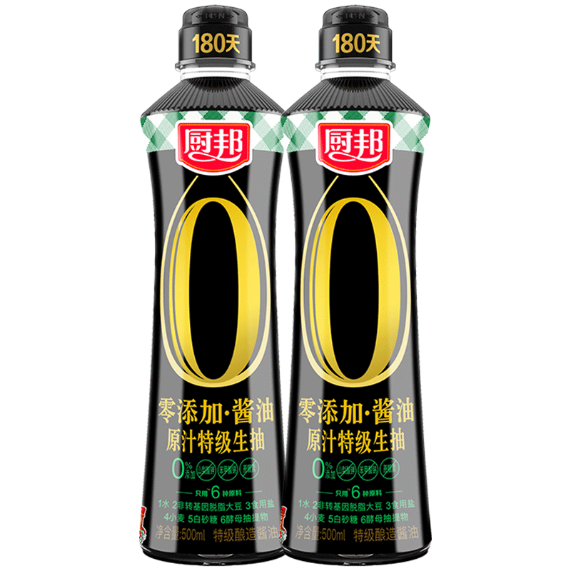 ¥10.8 10.8!厨邦特级生抽500ml*2 18.8
