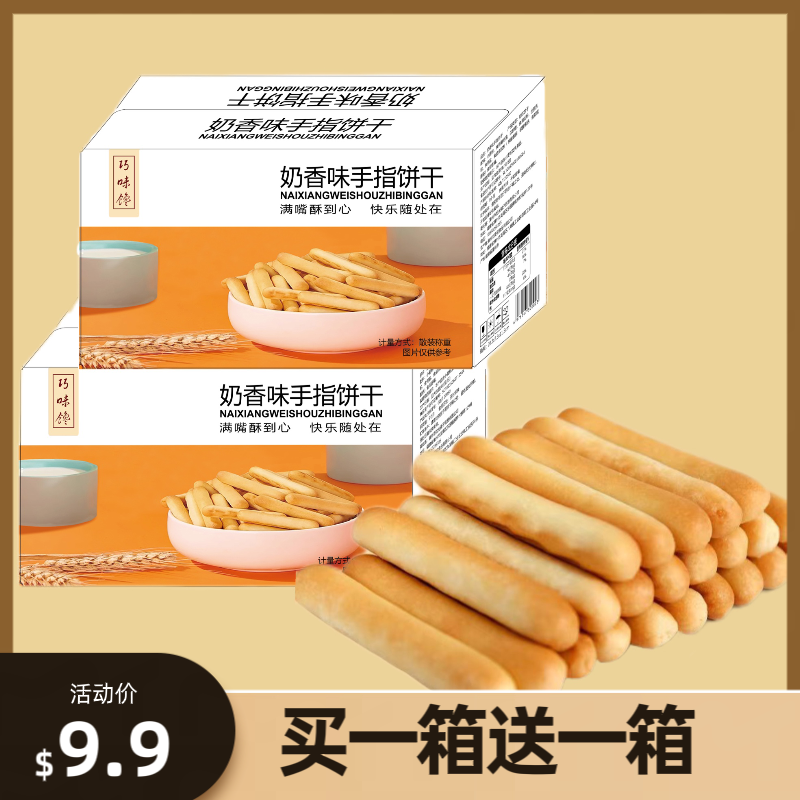 ¥9.90 【买1箱送1箱】奶香味手指饼干童年怀旧棒棒饼干解馋小零食200根/箱 9.90