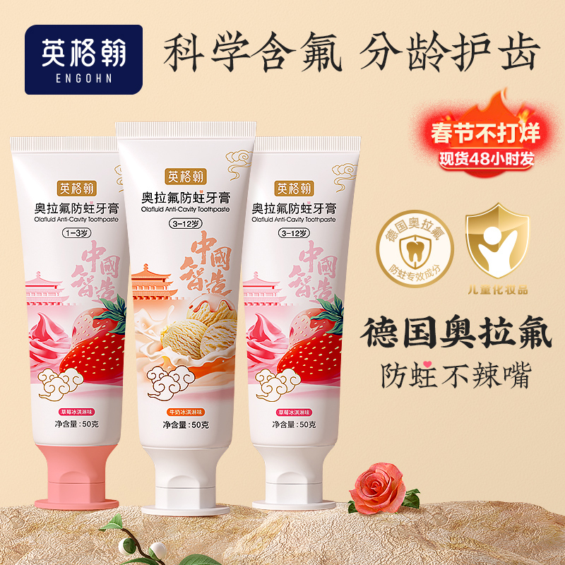 ¥19.90 英格翰儿童牙膏奥拉氟防蛀可不吞咽宝宝小孩专用含氟1-3到6-12岁 19.90