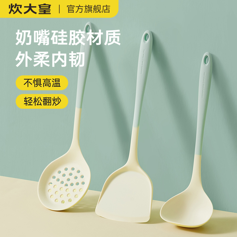 ¥9.90 炊大皇硅胶锅铲家用厨房高档炒菜汤勺铲子漏勺锅铲勺子锅勺套装 9.90