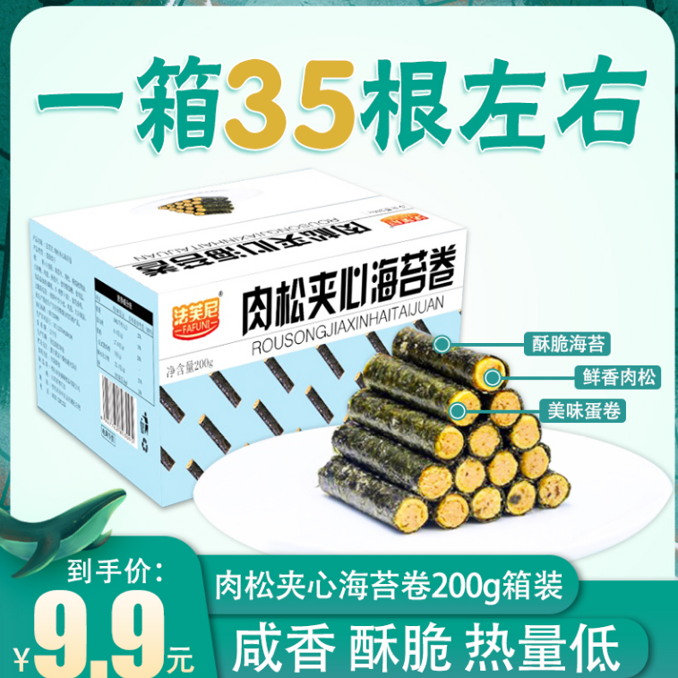 ¥9.90 法芙尼肉松夹心海苔蛋卷 解馋办公室休闲零食追剧零食 200克/箱 9.90