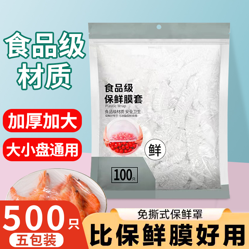 ¥9.90 【9.9元500只】食品PE级一次性保鲜膜套罩家用防尘防串味保鲜袋加厚 9.90