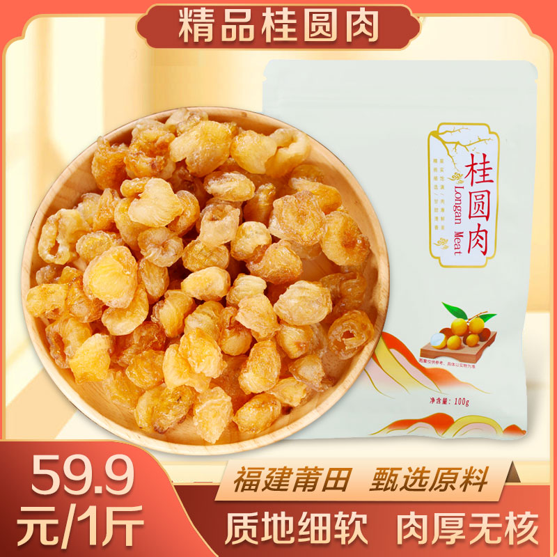 ¥17.90 福建莆田大果桂圆肉100g*5袋无核新鲜龙眼肉干即食泡水可搭配花茶 17.90