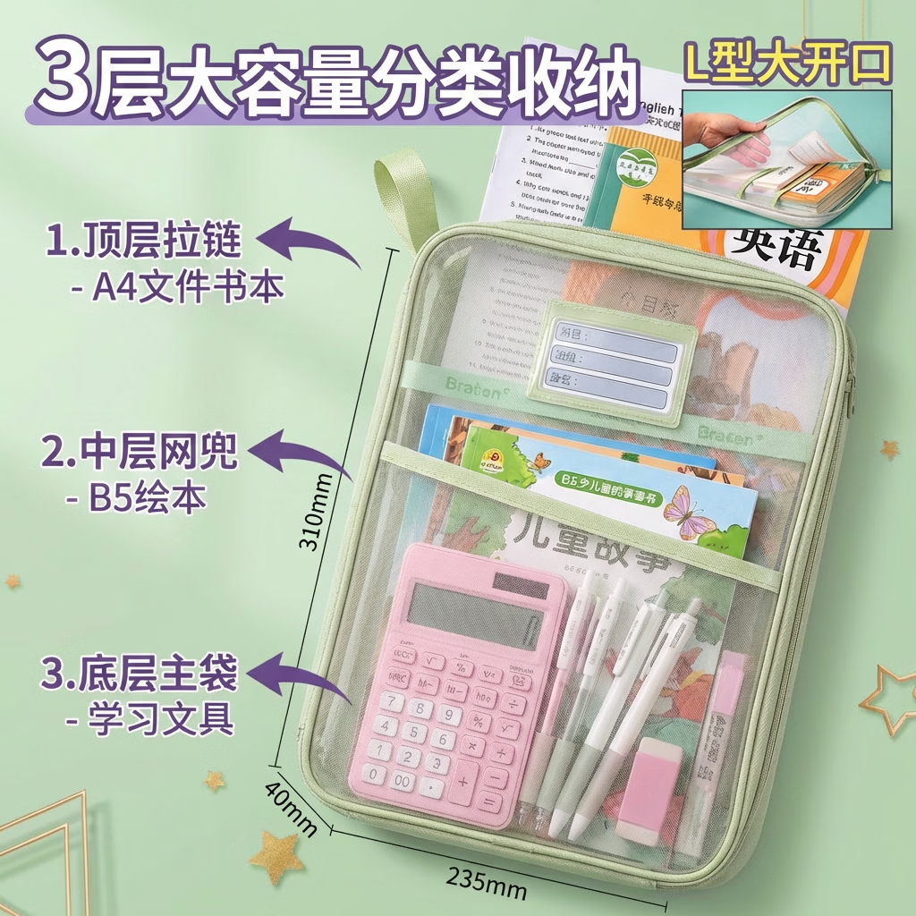 绿文科目袋L型大开口学科袋,仅需0.6元