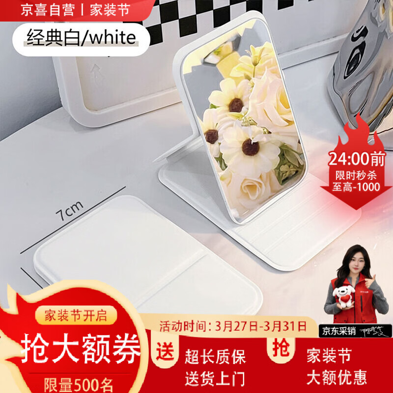1.01折叠手持迷你镜仅需1元,7*10cm便携随身化妆镜亏本冲量