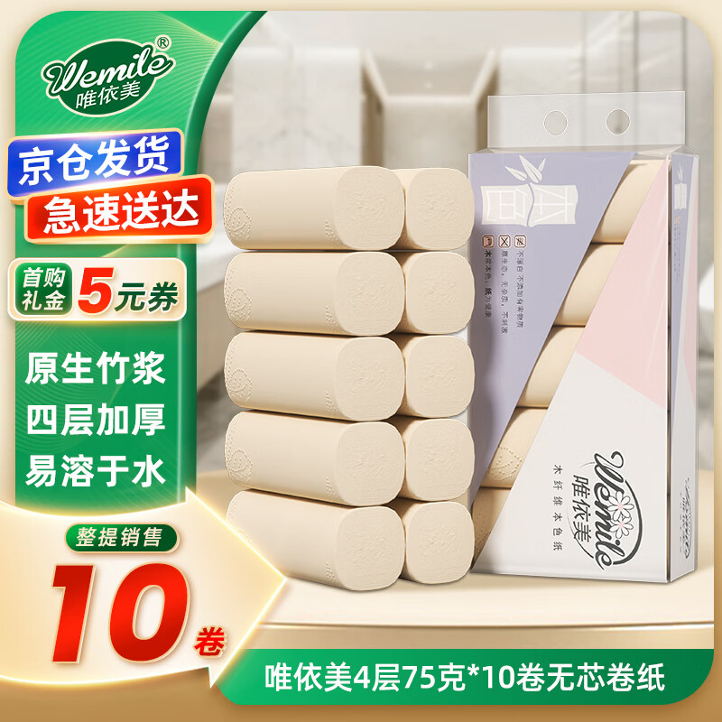 唯依美无芯卷纸4层10卷首单仅1.9元