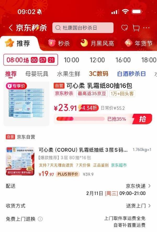 可心柔乳霜纸抽纸限时抢购,凑单后仅19.97元!