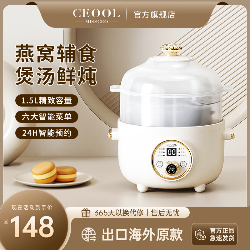 ¥128.00 ceool总裁小姐家用1.5升电炖锅多功能隔水炖煮粥陶瓷内胆煲汤神器 128.00