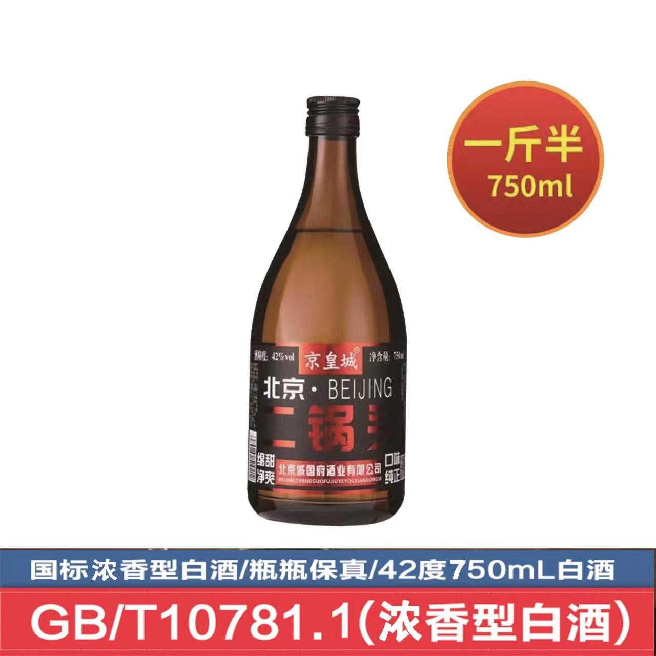 ¥39.60 京皇城【4瓶整箱】北京二锅头42度浓香型白酒750ml*4瓶白酒42度750 39.60