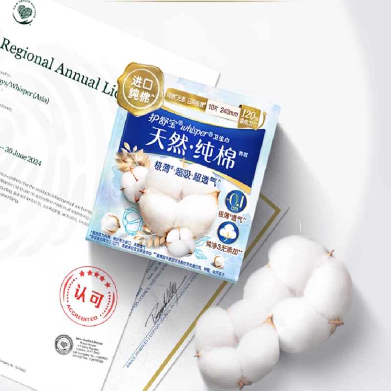 ¥93.9 护舒宝天然纯棉卫生巾100片 144.9