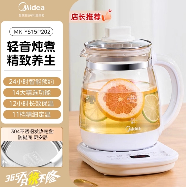 44.9元包邮!美的养生壶1.5L