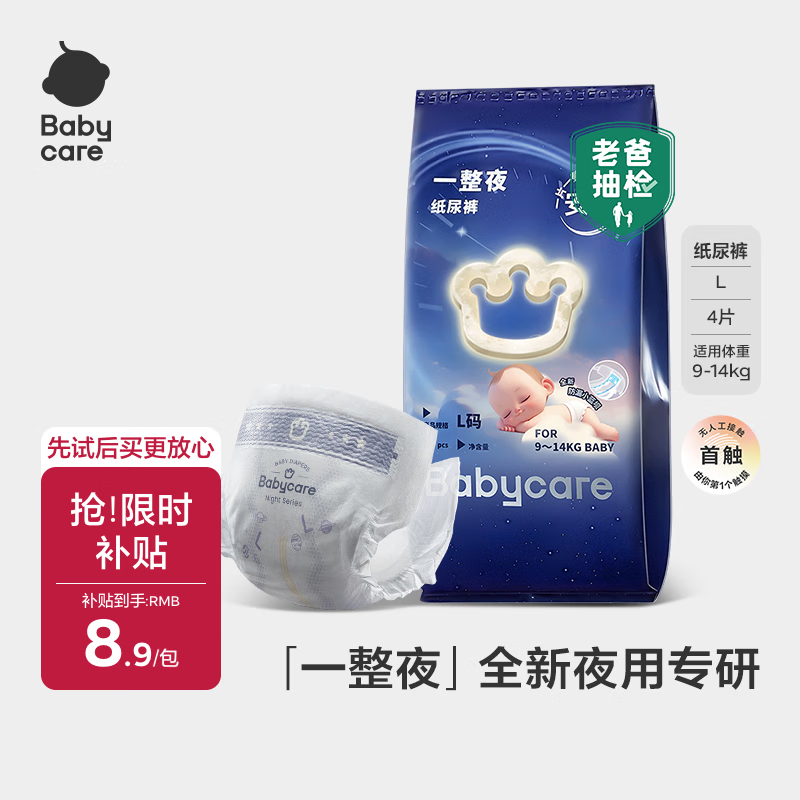 Babycare一整夜纸尿裤&拉拉袋试用装!首购2件仅12.8元包邮,6.4元/片超值体验