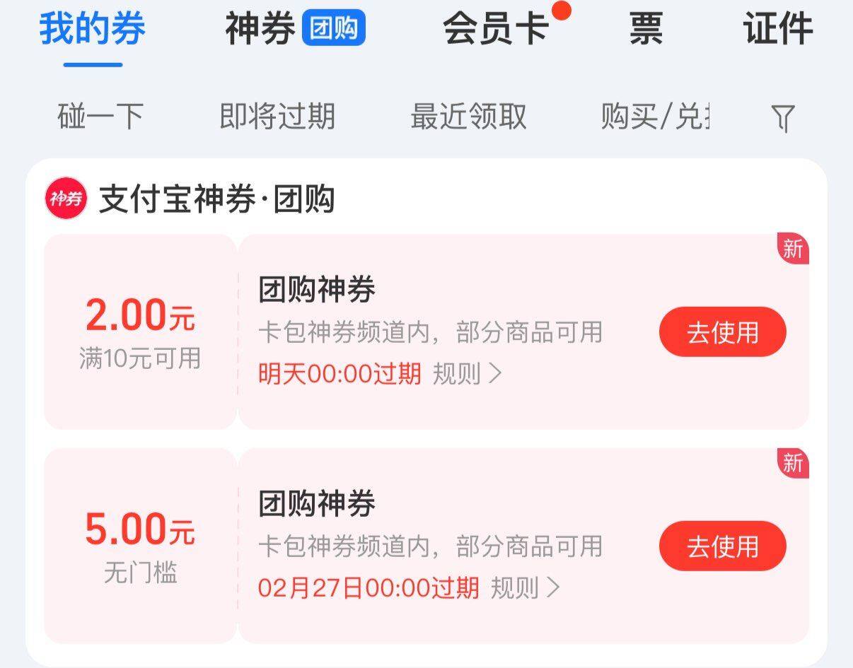 支付宝卡包神券:5元无门槛+0.01元购蜜雪冰城