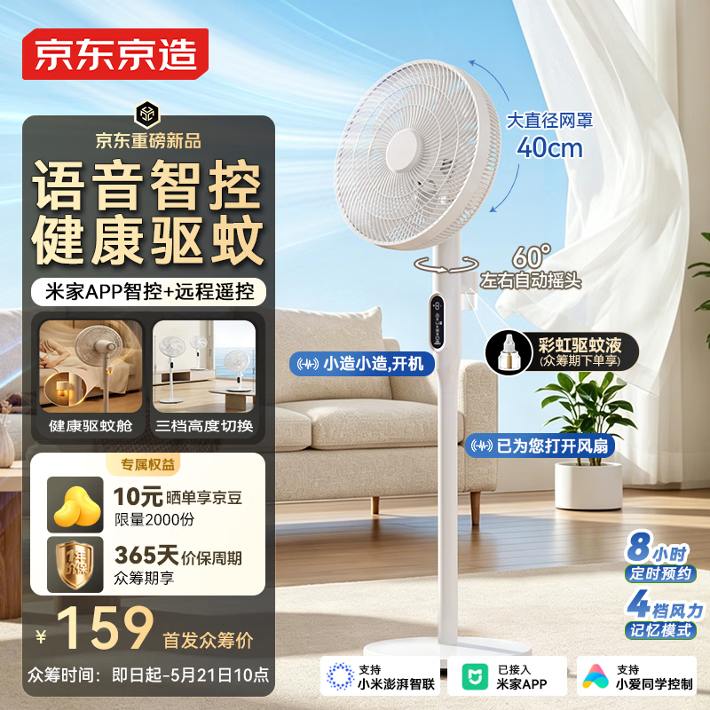 京东京造云宁电风扇:叠加国补后仅需126.65元,AI语音驱蚊清凉一夏