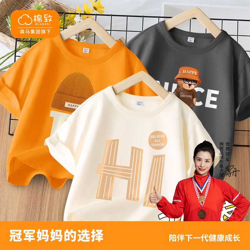¥49.90 棉致童装儿童短袖t恤男童纯棉半袖2024新款洋气夏装薄女大童上衣 49.90
