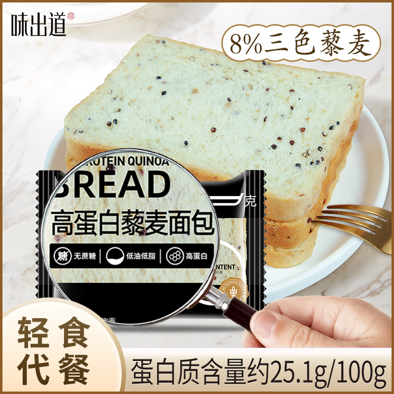 ¥19.90 【味出道】高蛋白藜麦全麦面包1000g无蔗糖整箱粗粮轻食代餐吐司 19.90
