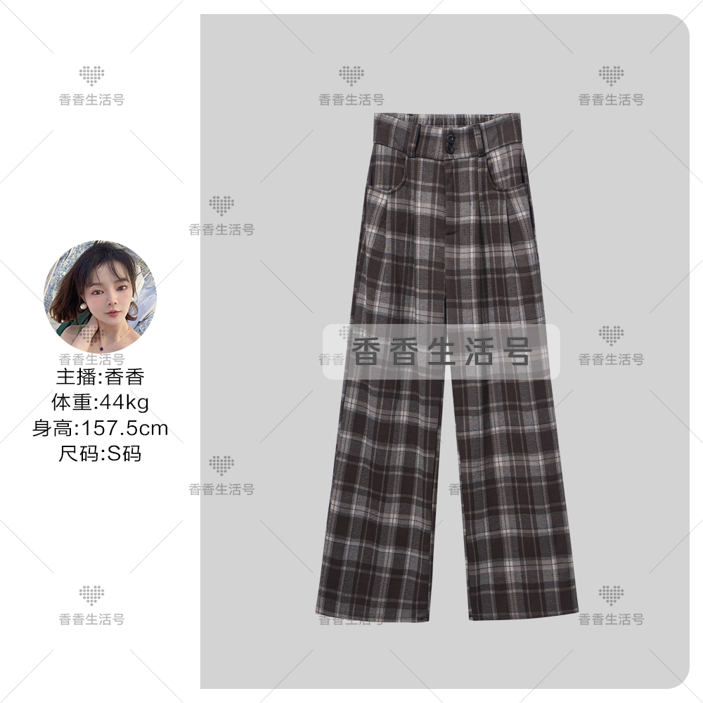 ¥589.00 【香香专属】百搭春夏2024高腰显瘦垂感休闲宽松格子阔腿裤 8890# 599.00