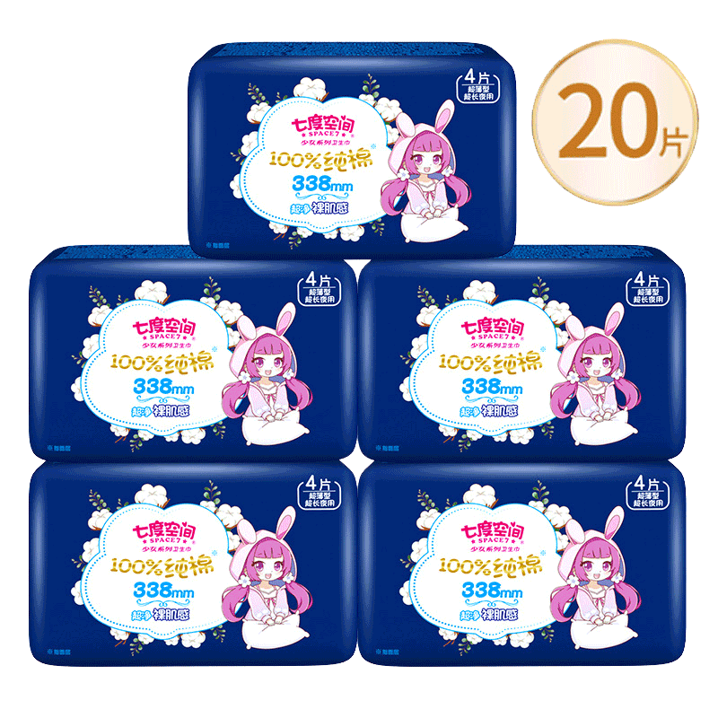 ¥16.9 【百补16.9】七度空间卫生巾夜用338mm20片 21.9