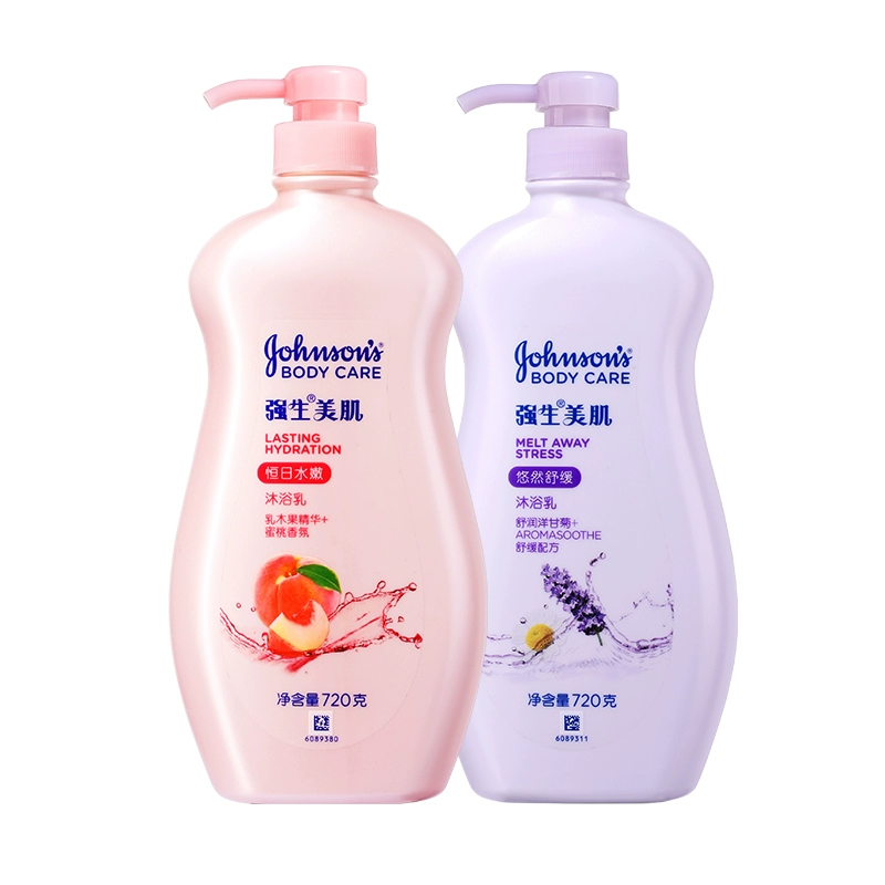 ¥39.9 返卡5!强生美肌薰衣草蜜桃沐浴露720g*2瓶 49.9