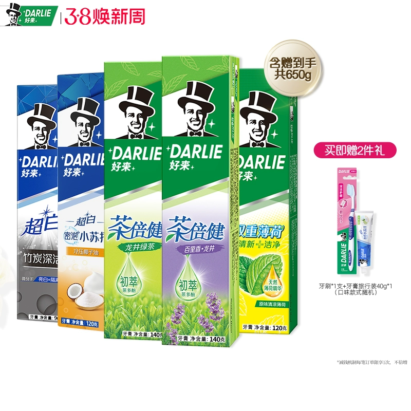 ¥39.9 【凑单31】黑人茶倍健超白牙膏组合7件套 59.9