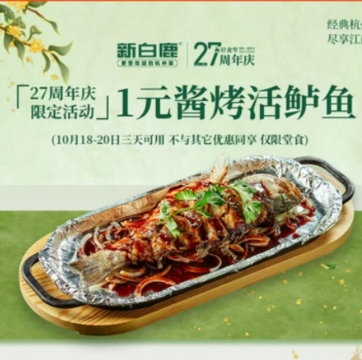 【美团】1元!27周年庆限定·酱烤活鲈鱼