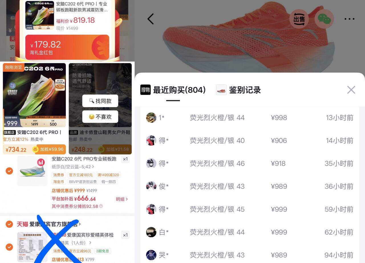 安踏C202 6代PRO神鞋到手仅630元,得物售价1000