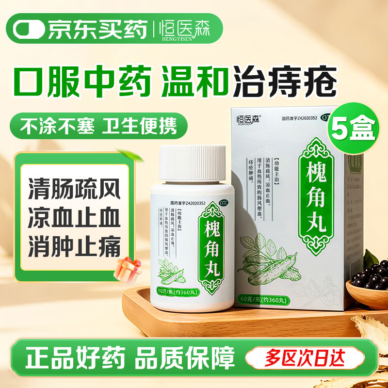 自营恒医森痔疮专用药槐角丸5盒装,最终到手价62.5元