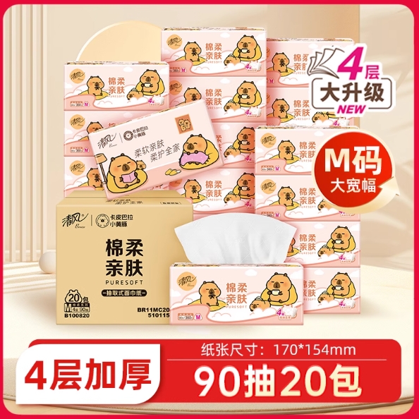 17.2元包邮!清风卡皮巴拉抽纸20包