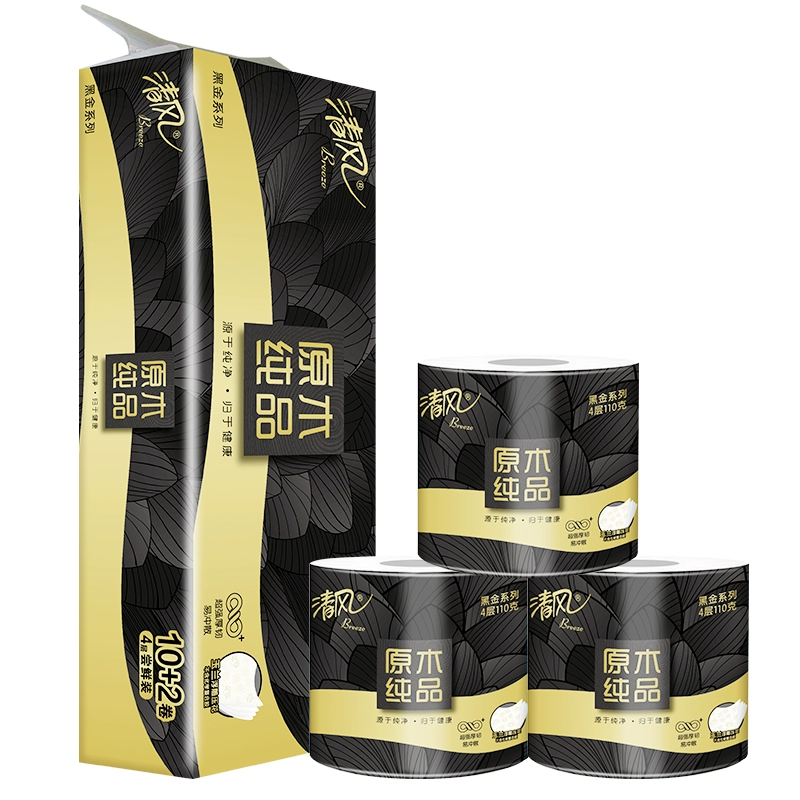 ¥14.9 晚八【百亿14.9】清风黑金卷纸4层110克12卷                                                19.9
