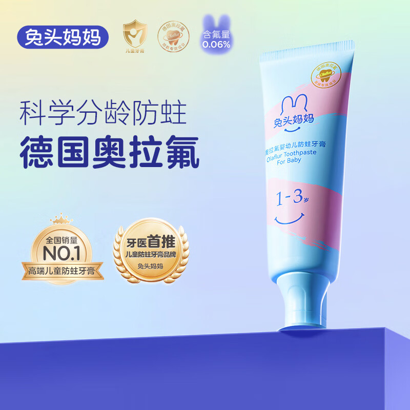 ¥26.9 兔头妈妈奥拉氟儿童牙膏 1-3岁宝宝低氟防蛀防龋齿固齿 【单只装】草莓味-50g 39.9