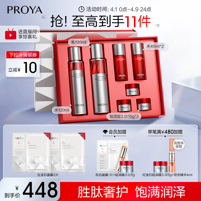 ¥448 珀莱雅(PROYA)红宝石水乳套装+面霜45g护肤品套装 护肤礼盒 化妆品套装生日礼物 458