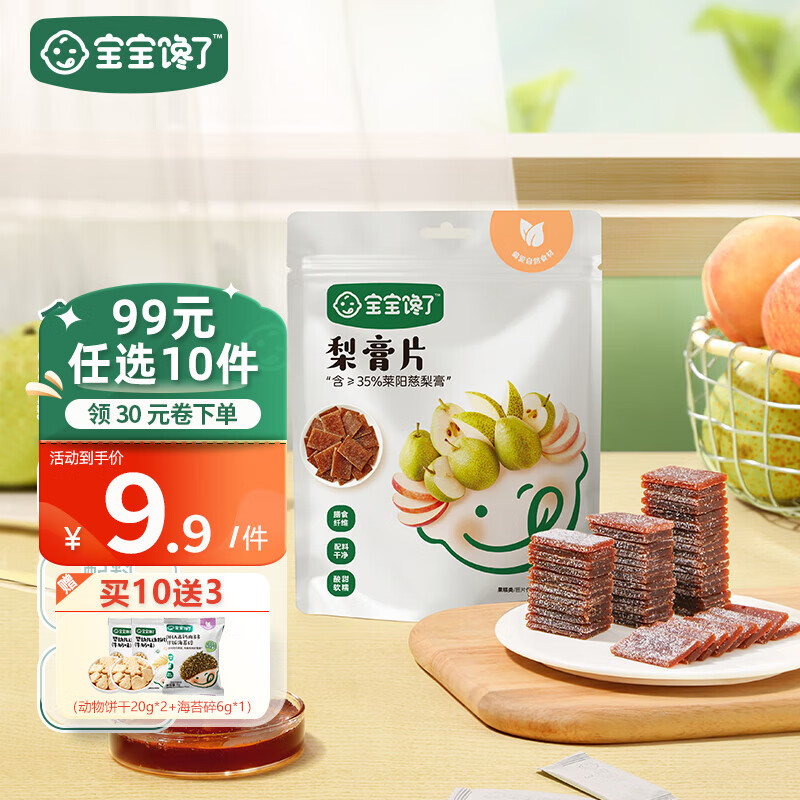 ¥19.9 宝宝馋了 【99选10】零食米饼鳕鱼肠泡芙山楂磨牙棒儿童1岁附宝宝婴儿食谱 梨膏片45g 20.9