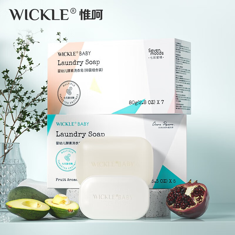 ¥66 WICKLE婴儿宝宝洗衣皂七色皂新生婴儿宝宝皂衣物护理酵素抑菌专用洗衣皂 七色皂80g*7/盒+自然皂150g*5/盒 86
