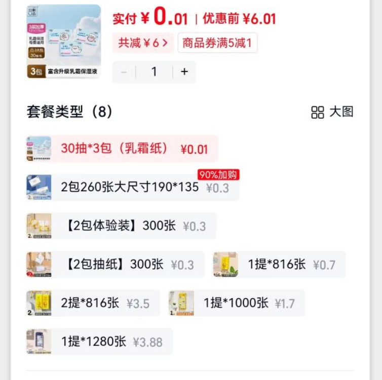 0.1元!洗衣液/抽纸/挂纸 可选