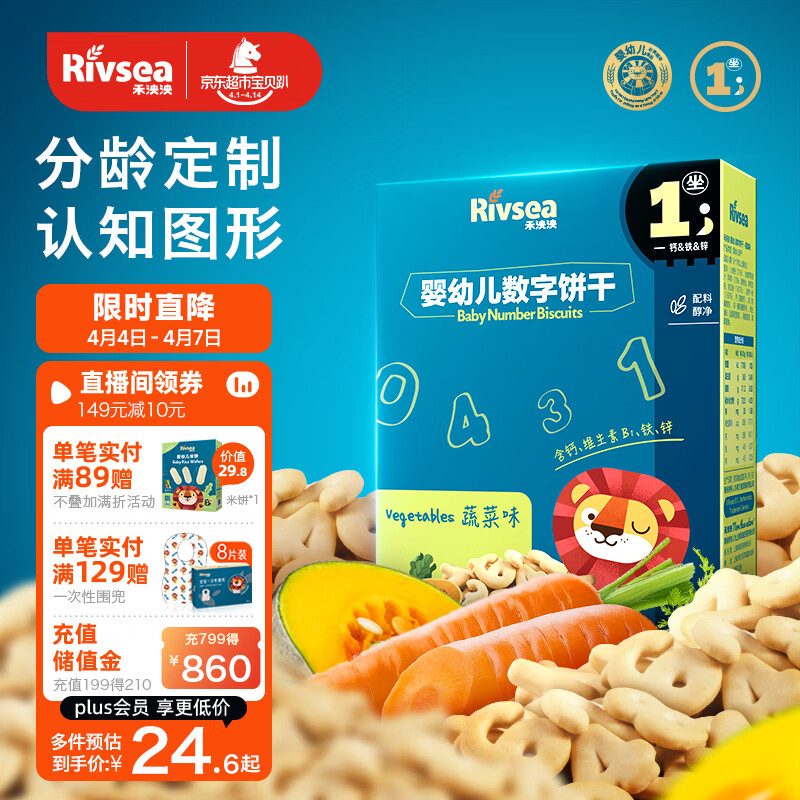 ¥31.8 禾泱泱婴幼儿饼干 宝宝零食7个月以上 磨牙饼干 数字造型饼干蔬菜味80g 32.8