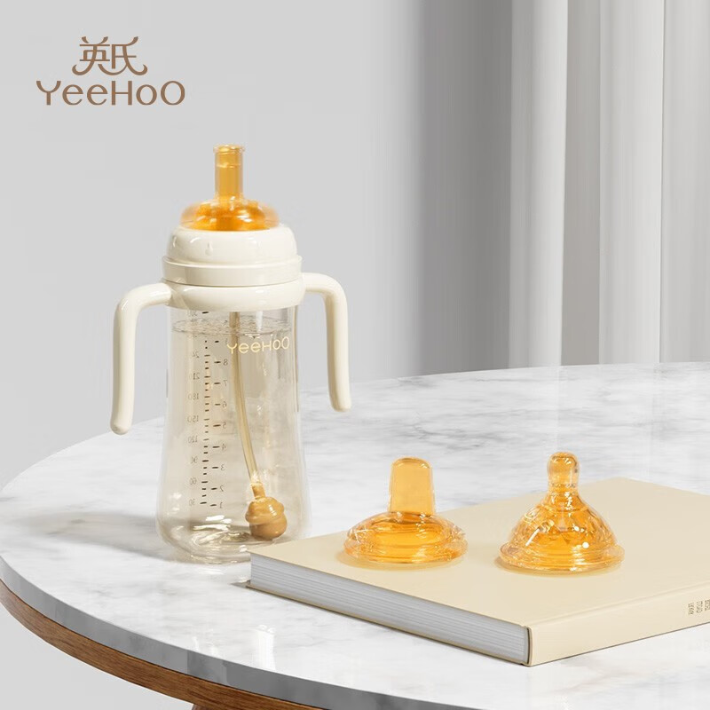 ¥59.09 英氏(YEEHOO)婴儿奶瓶宝宝学饮杯儿童水杯婴儿喝水重力球PPSU奶瓶婴儿带手柄杯 奶白色 300ml 配三头两重力球 139.09