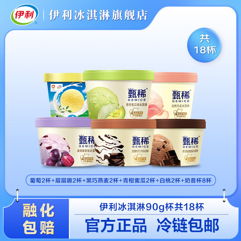 ¥76.9 伊利甄稀冰淇淋雪糕5口味90克杯+伊利香草味奶昔杯冰激凌组合装共18杯 甄稀5口味90g10杯+(奶昔杯8杯) 86.9