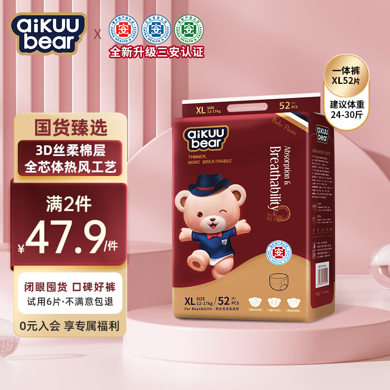 ¥55.9 名典泰迪纸尿裤超薄透气拉拉裤新生婴儿尿不湿男女宝宝通用干爽学步裤 拉拉裤XL码52片【12-15kg】 59.9