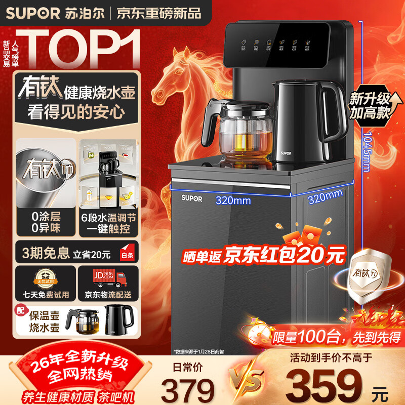 苏泊尔钛泉系列智能茶吧机:首购308.99元,晒单返20后仅需288.99元