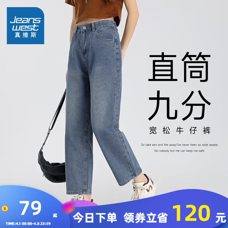 ¥59 真维斯女装牛仔裤 春夏新款时尚港风自然腰直筒休闲裤子 GYP B款雾霾蓝8520(直筒九分) 29 199