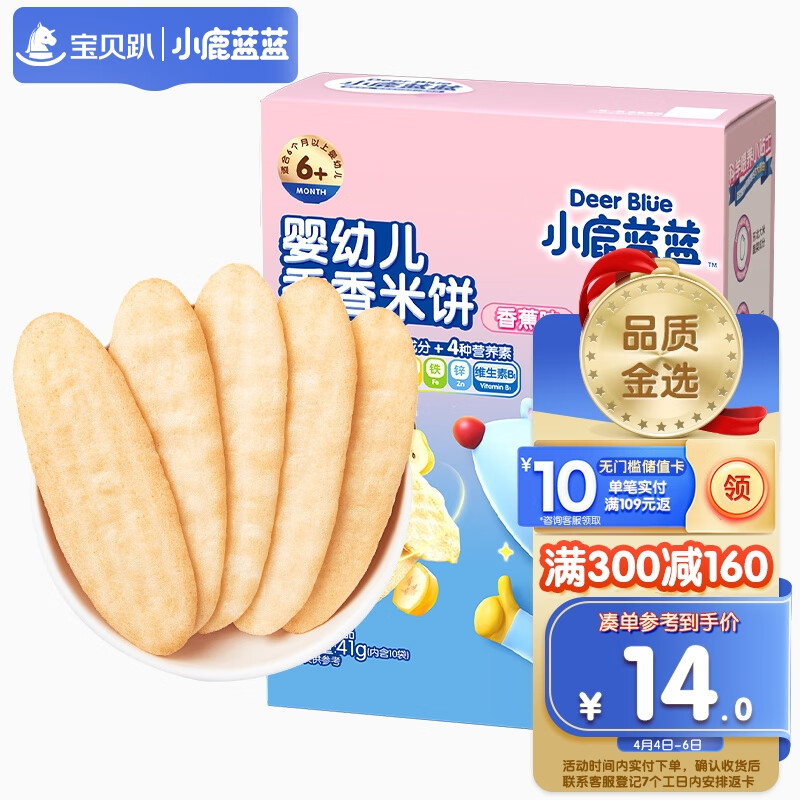 ¥9.9 小鹿蓝蓝 宝宝米饼 香蕉味 宝宝零食儿童零食 营养磨牙 婴儿米饼41g 29.9