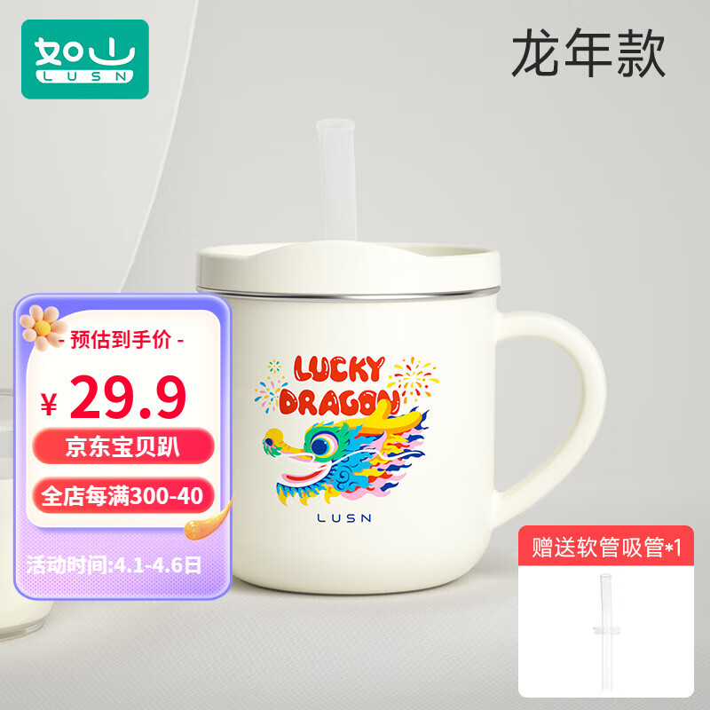 ¥21.9 如山儿童牛奶杯刻度家用敞口316L不锈钢宝宝吸管杯学饮杯喝水杯子 牛奶杯【龙】带盖 260ml 29.9
